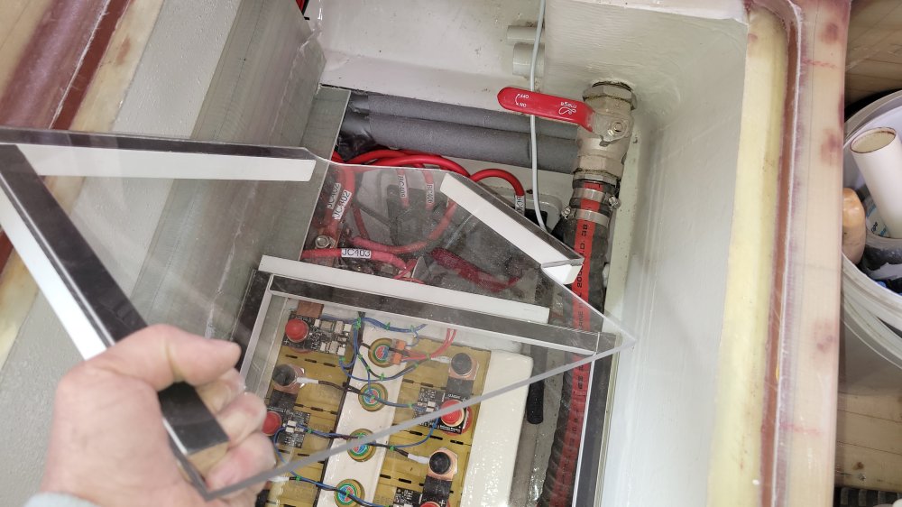 Once I felt confident that I understood both the behaviour of the system and the measures required to keep it operating safely, the test setup was dismantled and installed on board. The battery is now located at the bottom of the dinette crossbench, fully protected beneath a removable floor. This space also remains perfectly usable for storing supplies.