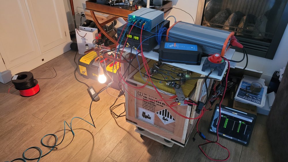 With the battery assembled, the setup was completed with chargers, converters and loads. I spent roughly three months experimenting with different configurations and settings, keeping the system almost continuously in sight in the living room.