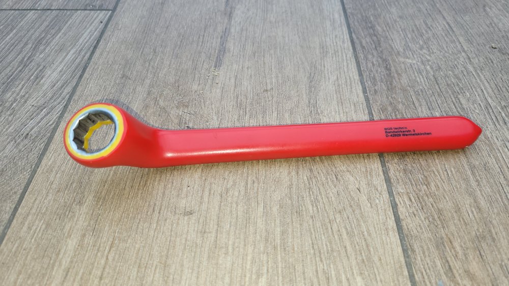 The amount of energy stored in these cells is remarkable. To avoid accidents, short circuits must be prevented at all times. Knowing my own tendency to be a bit too casual, I purchased an insulated wrench for tightening the M12 terminal studs.