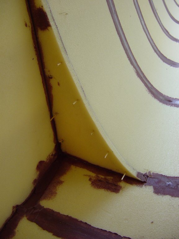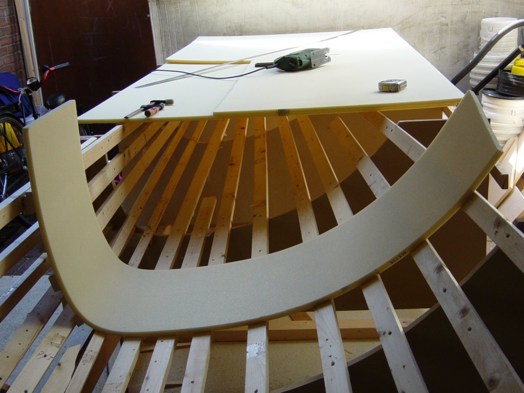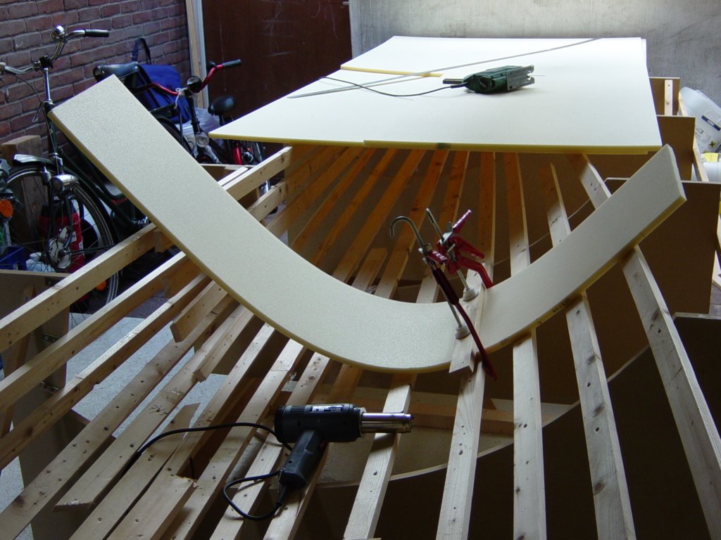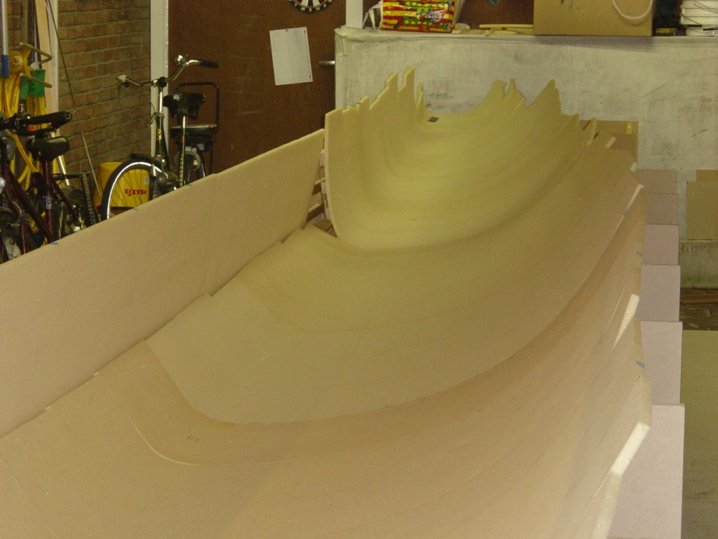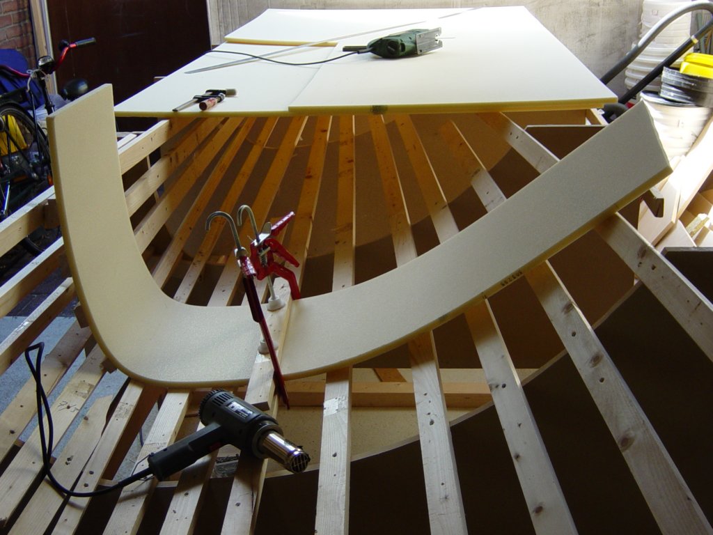 Fortunately too much of a pain for me and the hot box creation I made turned out to be unsuitable and disappeared in the garbage bin. But why always doing the things the hard way first? It was easy to bend the foam in place by just heating the foam with a heat gun while pushing it into the form.