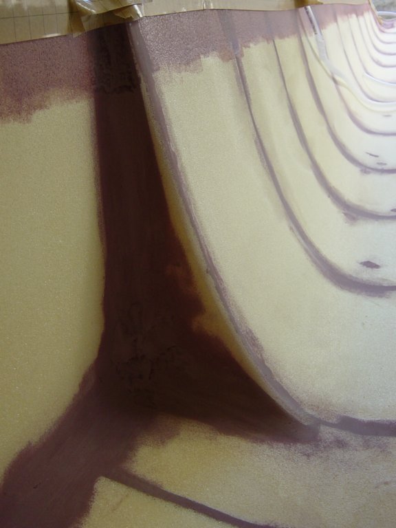 I received a lot of questions about the area were the hull rest against the cradles. The thought is that the weight of the hull on the supports will disturb the epoxy flow by producing a compression force in the laminate. Well, this is only a (small) problem in the dry condition to keep the fabrics in their positions. During the infusion the vacuum pressure is about 1 kg/sqcm (this is 10 ton/sqm) and this force will overrule the weight completely. The epoxy flow is in not any way influenced by these supports.