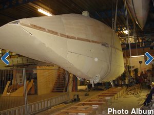 Turning the main hull upright is once again a milestone in the project after which a new phase in the build starts. Click in the animated image to open the photo gallery.