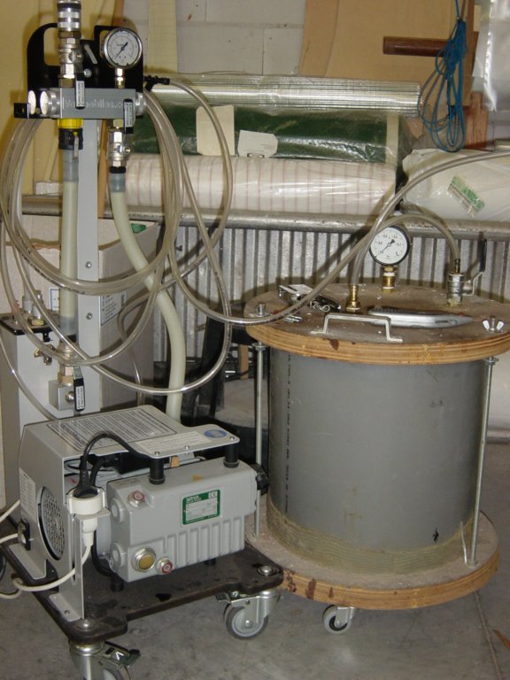 To be able to hear better, I put the vacuum pump outside the building, however I knew that the leak was probably too big to be able to hear. I spent the whole Friday evening and Saturday morning on finding the leak. All kinds of scenarios went through my mind, including the worst, a poreus or a punctured hull. Just before I thought I was getting crazy, I noticed the cleaning lady who was still in the building on this Saturday morning. Knowing that women are much more patient, I asked here to help me finding the leak.