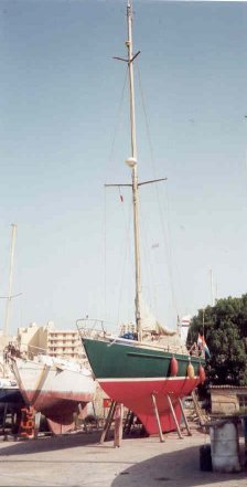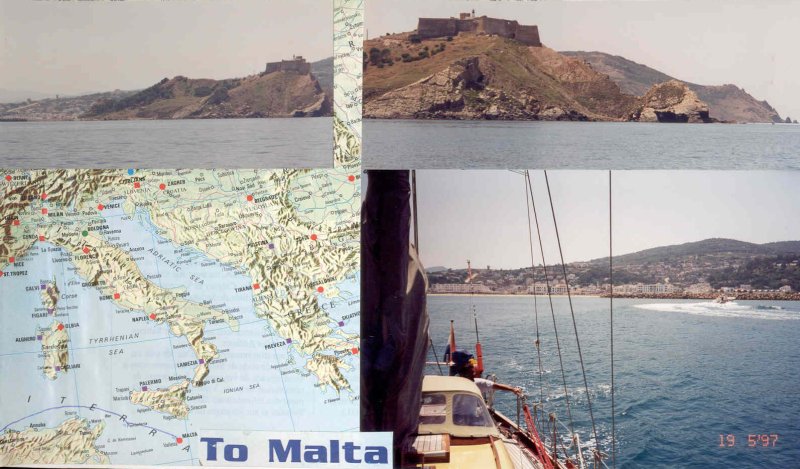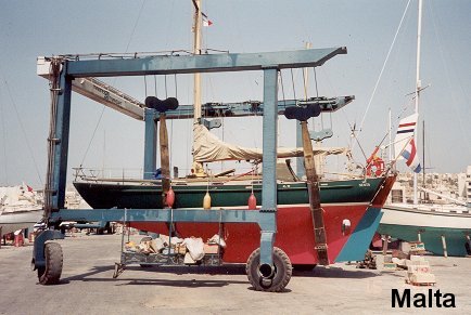 Tegen de avond varen we uit. De lekkage is vervelend, maar verder goed bij te houden. We maken een nieuw plan. Patras halen we niet meer. We besluiten de boot op Malta achter te laten, nog zo'n 3 dagen zeilen. Uit de pilot leren we dat je op Malta geen boot onbeheerd achter mag laten, tenzij deze op de kant staat. Op Malta wordt je opgewacht door vertegenwoordigers van agenten die zich aanbieden om op je boot te passen. Als ze echter vernemen dat wij de kant op willen druipen ze af. We vinden op Manoel Island een goede jachtwerf en laten Senta het water uit hijsen. Het schip wordt afgestut op afgezaagde boomstammetjes. Hoewel dat er voor onze begrippen wat gammel uitziet, is de uitvoering professioneel en degelijk.